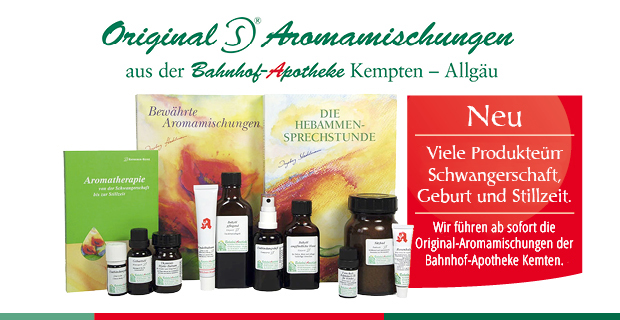 Wir verleihen Medela Milchpumpen und führen ein speziell abgestimmtes Sortiment für Mutter und Kind mit Produkten von Weleda, Sidroga, Dr. Hauschka, Wala und Medela oder der Bahnhof-Apotheke Kemten (Original-Aromamischungen)