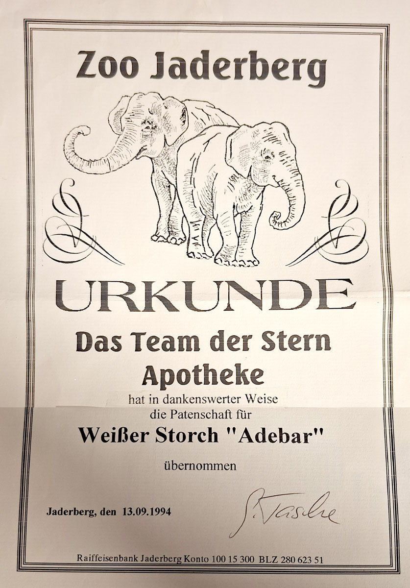 Patenschaft für Weißer Storch „Adebar“ aus dem Zoo Jaderberg